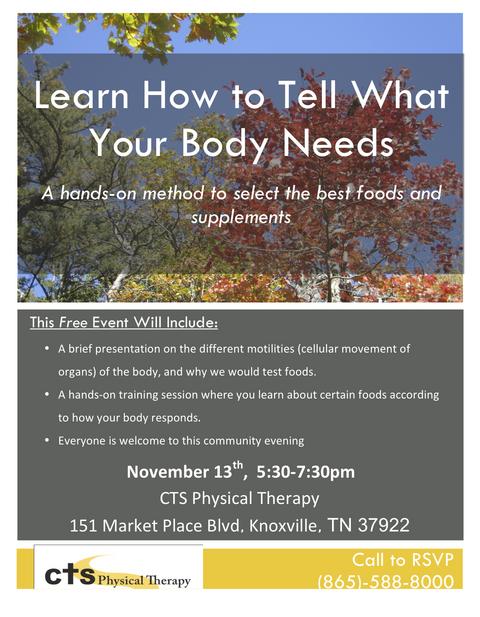 Unlike past CTS events, “Learn How to Tell What Your Body Needs” offered the crowd the unique opportunity to learn a hands-on method in how to select the best foods for the individual. The participation was great and many people were able to pick up on this method right away.